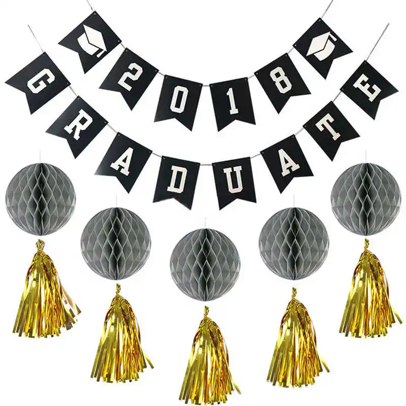 Ceiling decorations are must haves so choose tissue balls and hanging fans in your school colors to make your soiree picture perfect. From grad themed tableware to decorations party favors accessories and more well have everything you need. Celebrate with graduation party decorations for kindergarten high school college medical school or trade school.