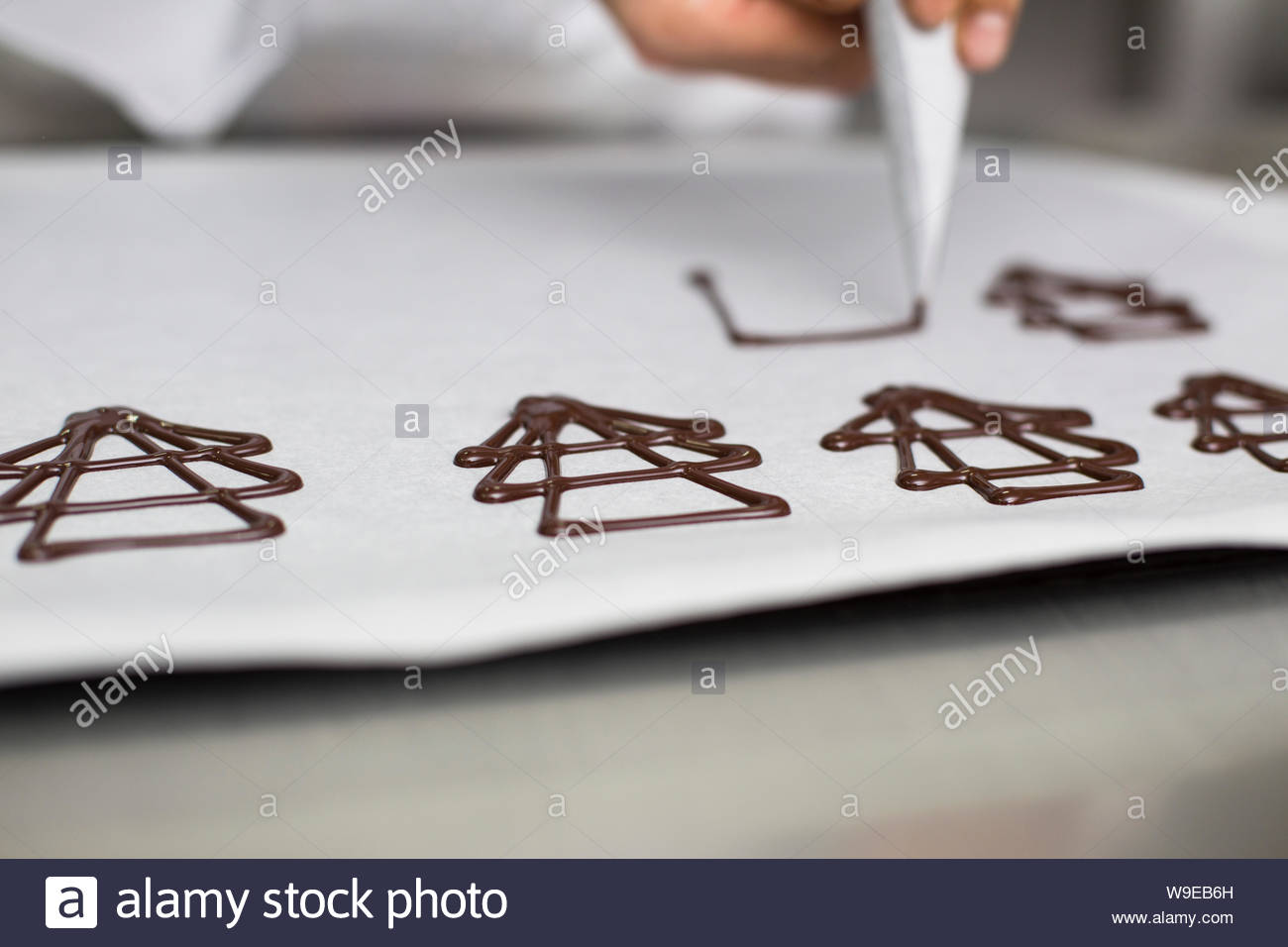 Chef Making Decorations With Chocolate Stock Photo 264003561 Alamy