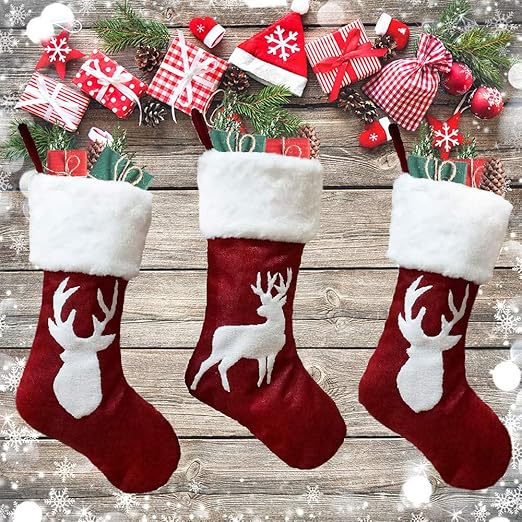 Amazon Com Christmas Stockings Red Reindeer 3 Pcs Stylish Xmas