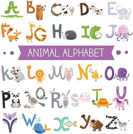 Amazon Com Transser Abc Stickers Alphabet Decals Animal Alphabet