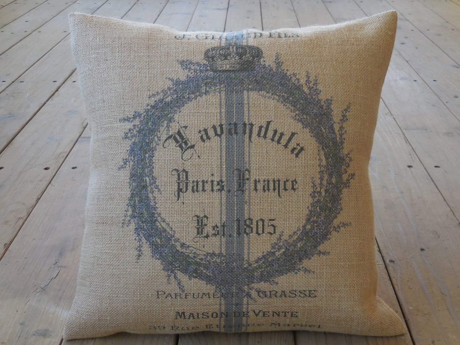 Lavender Wreath Burlap Pillowcase Shabby Chic Decor French Country