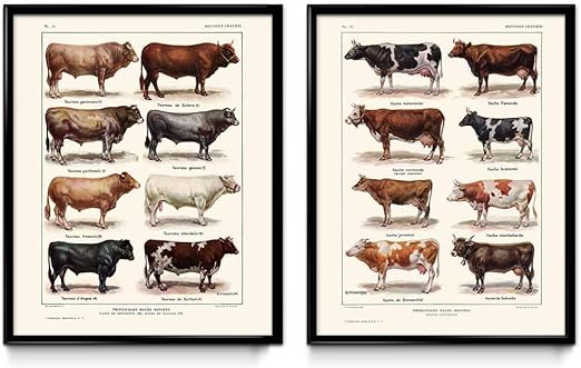 Amazon Com Cows Breeds Vintage Print Set Of 2 Cow Poster Cow