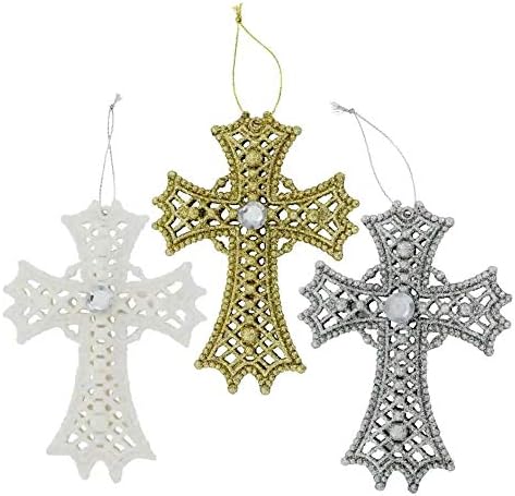 Amazon Com Christmas Tree Decorations Glittery Cross Ornaments