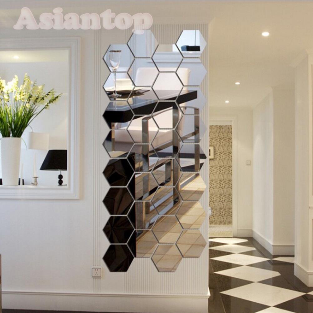 Hexagonal 3d Mirrors Wall Stickers Home Decor Mirror Wall Sticker