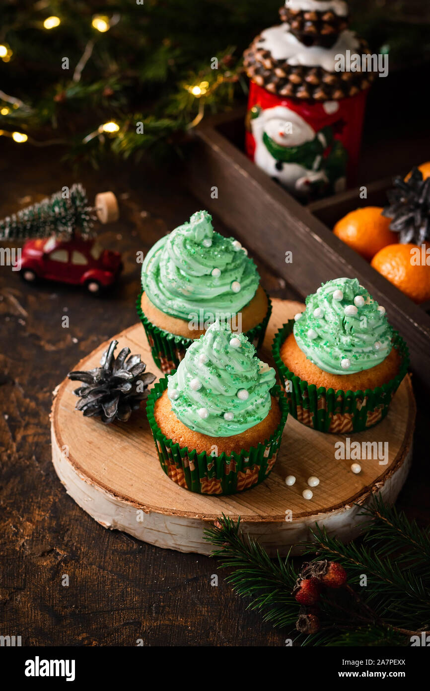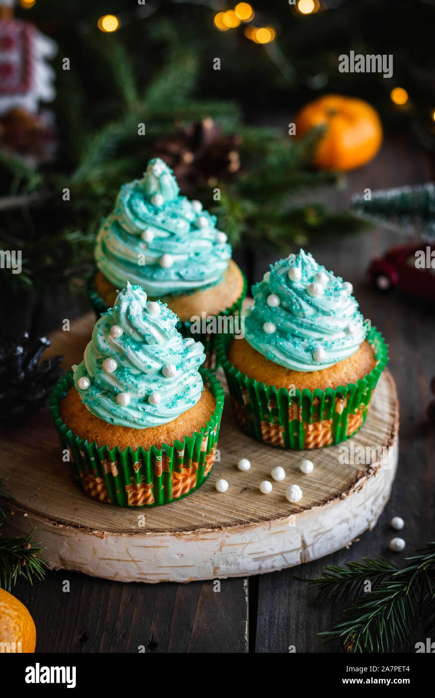 Mandarin Cupcakes With Festively Decorated Caps From Butter Cream