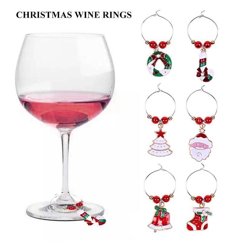 6pcs Set Christmas Wine Glass Charms Decoration Cup Ring Party