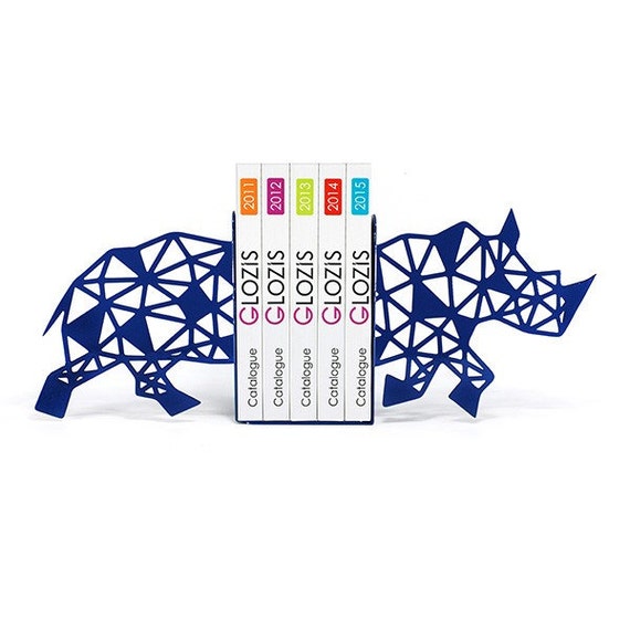 Rhino Bookends Metal Bookends Geometric Bookends Decorative Etsy