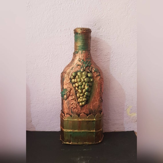 Decorated Wine Bottles Decoupage Bottles Altered Art Mixed Etsy