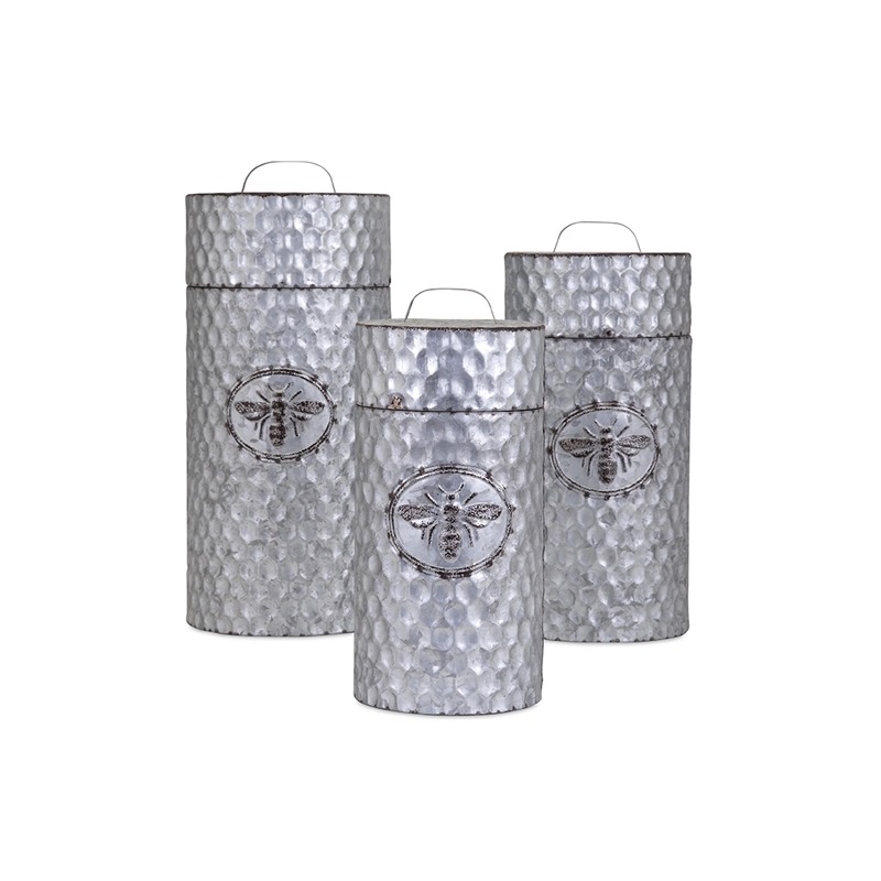 Ty Honeybee Galvanized Decorative Canisters Set Of 3 By Imax