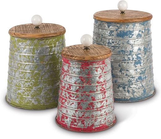 Decorative Nesting Kitchen Canisters With Lids Galvanized Set Of