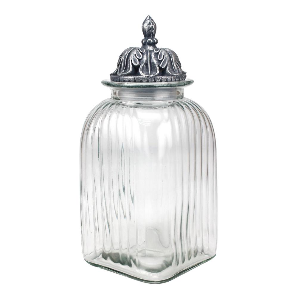 Stonebriar Collection Fluted Glass Canister With Decorative Lid Sb