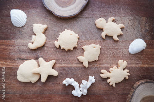 Sea Animals Cookies On Wooden Tray With Decorative Coral Buy