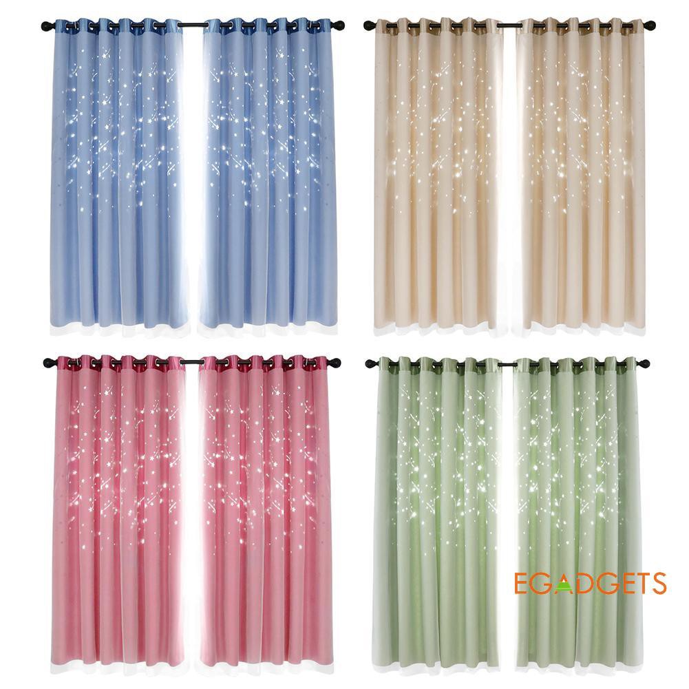 Eg 2pcs Star Shower Hollow Yarn Blackout Curtains Windows