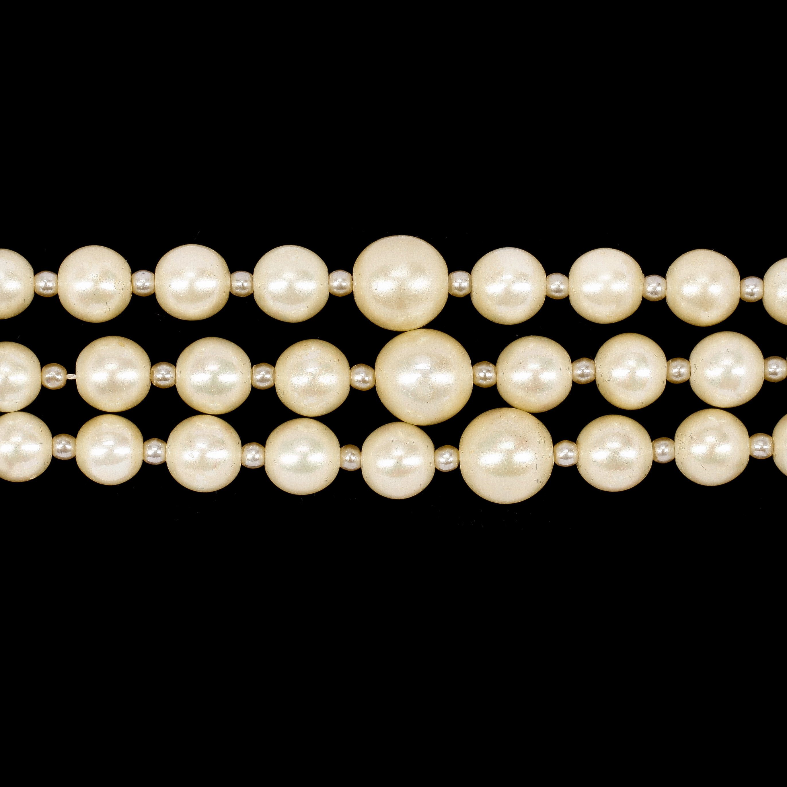 A Necklace By Christian Dior With Three Strand Decorative Pearls