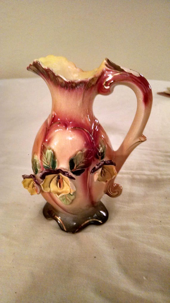 6 Tall Ceramic Decorative Pitcher Vase With 3 D Flower Etsy