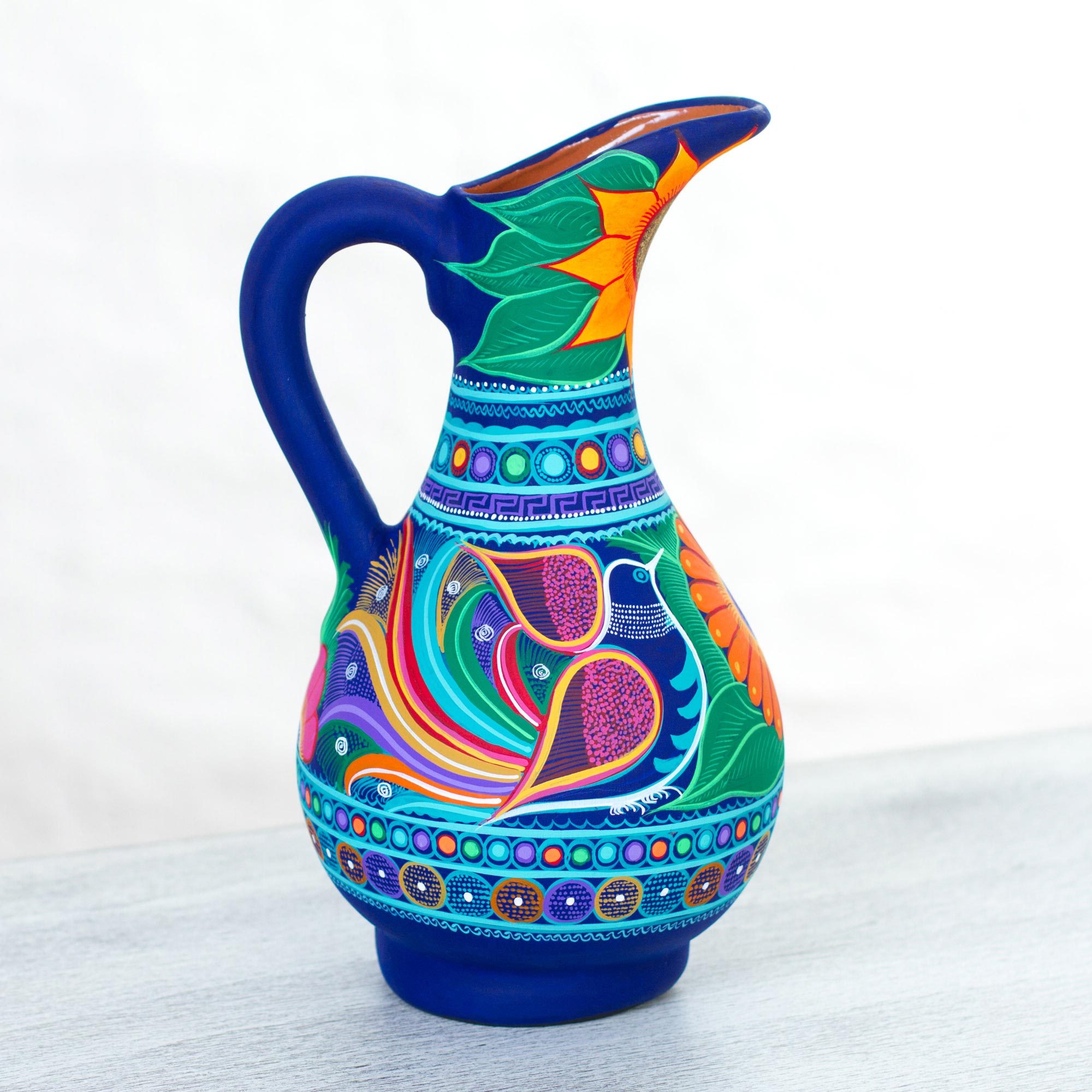 Decorative Ceramic Pitcher With Doves From Mexico Delicate Doves