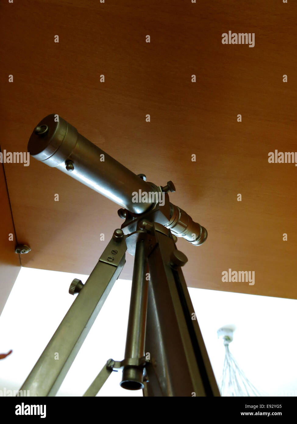 Decorative Telescope On Bookcase Low Angle View Stock Photo