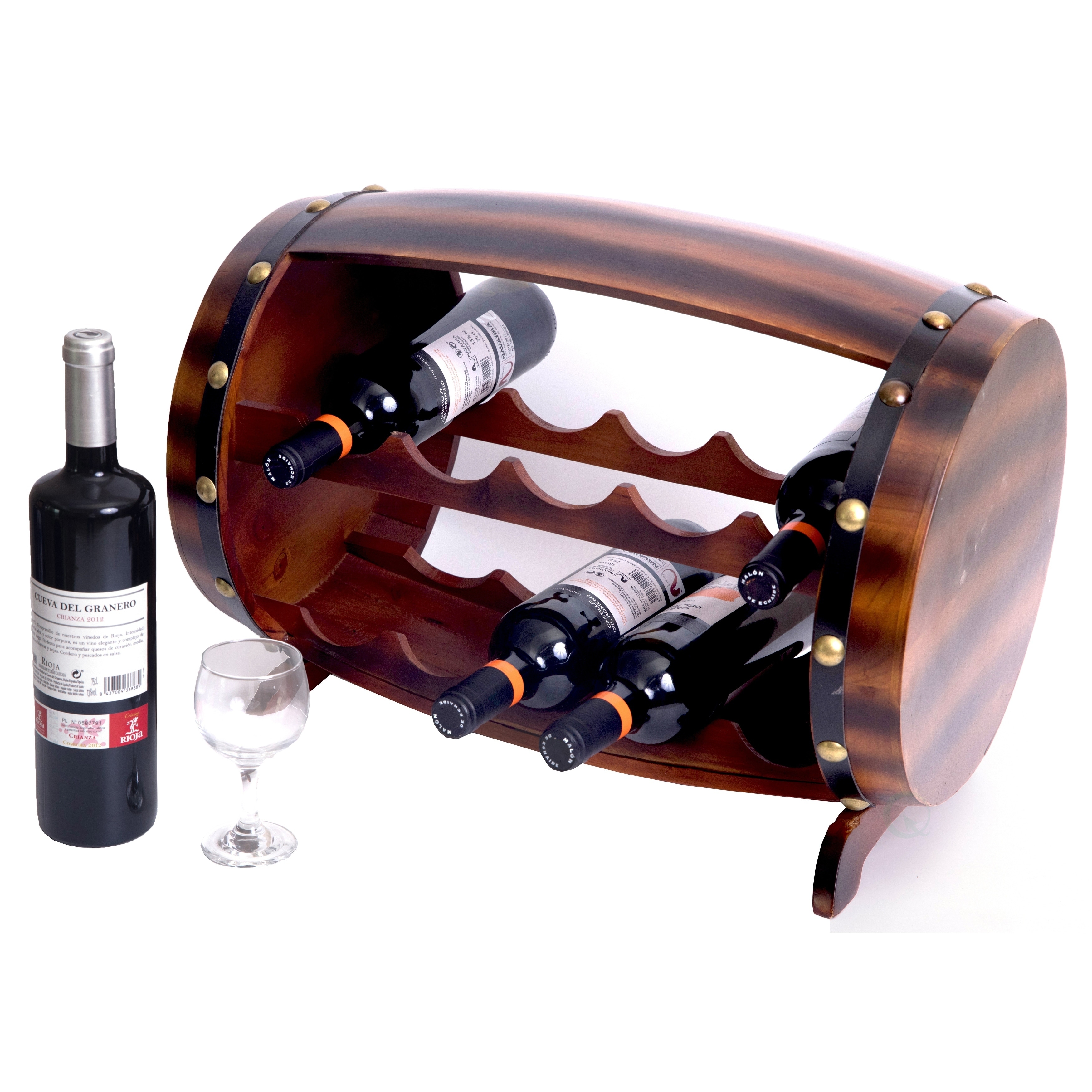 Wooden Barrel Shaped Wine Rack 10 Bottle Decorative Wine Holder