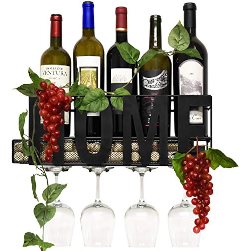 Home Wallmounted Wine Racks Metal And Glass Holder With Cork