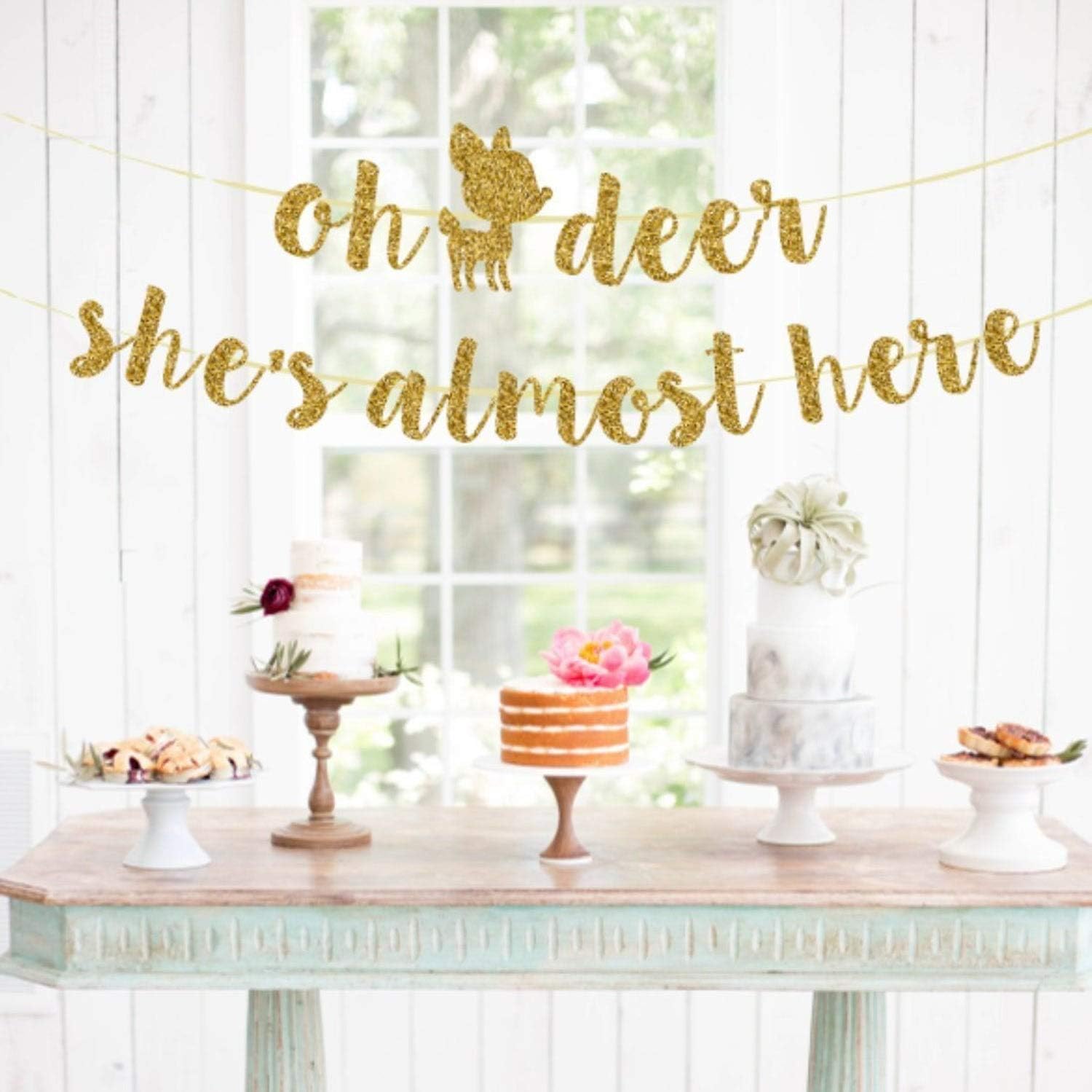Amazon Com Glittery Banner Oh Deer Shes Almost Here Oh Deer