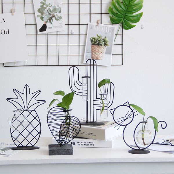 Wrought Iron Transparent Glass Hydroponic Vase Decoration Living