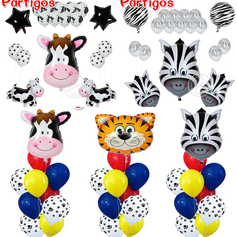 1set 44 64cm Cow Tiger Zebra Pig Head Balloons Farm Animal Theme