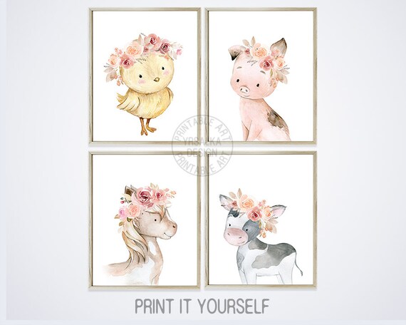 Farm Animal Decor For Girl Room Farm Nursery Decor Printable Etsy