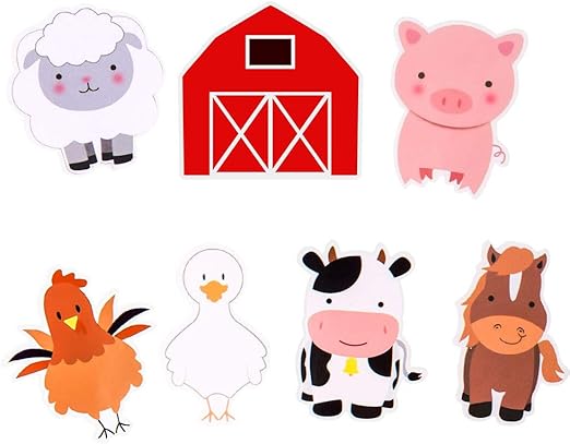 Blulu 72 Pieces Farm Animal Cardboard Cutouts With Glue Point Dots