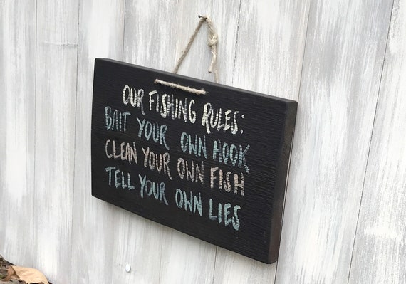 Fisherman Gift Our Fishing Rules Sign Cabin Decor Etsy