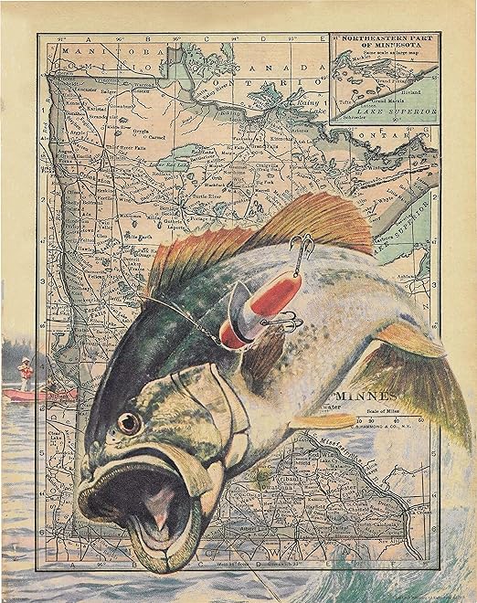 Amazon Com Minnesota State Map Largemouth Bass Fishing Lures Art