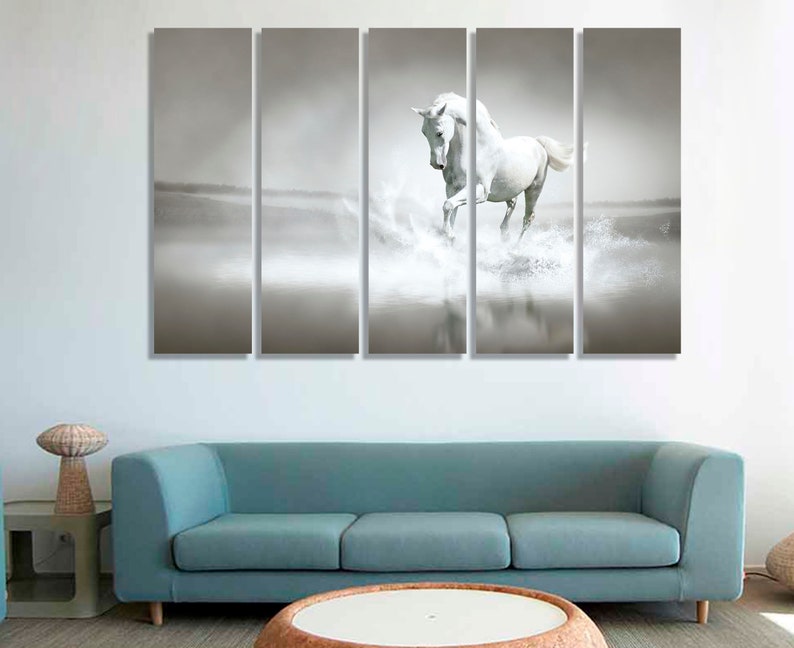Horse In The Water Art White Horse Decor White Horse Wall Etsy
