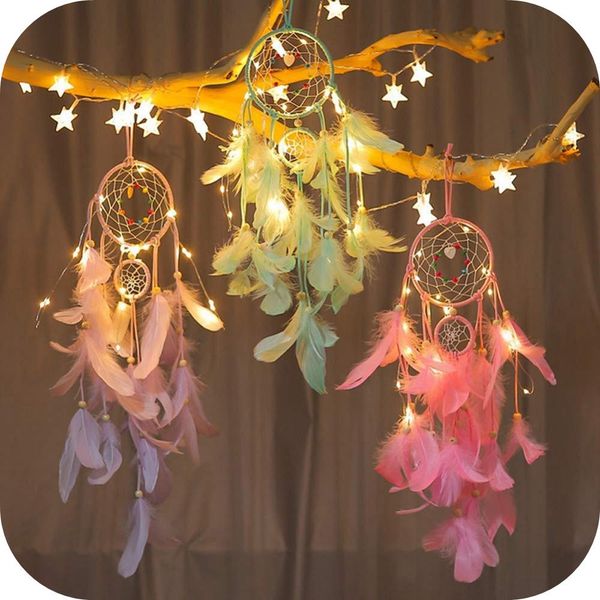 Led Dream Catcher Purple Feather Chandelier Ornaments Handmade
