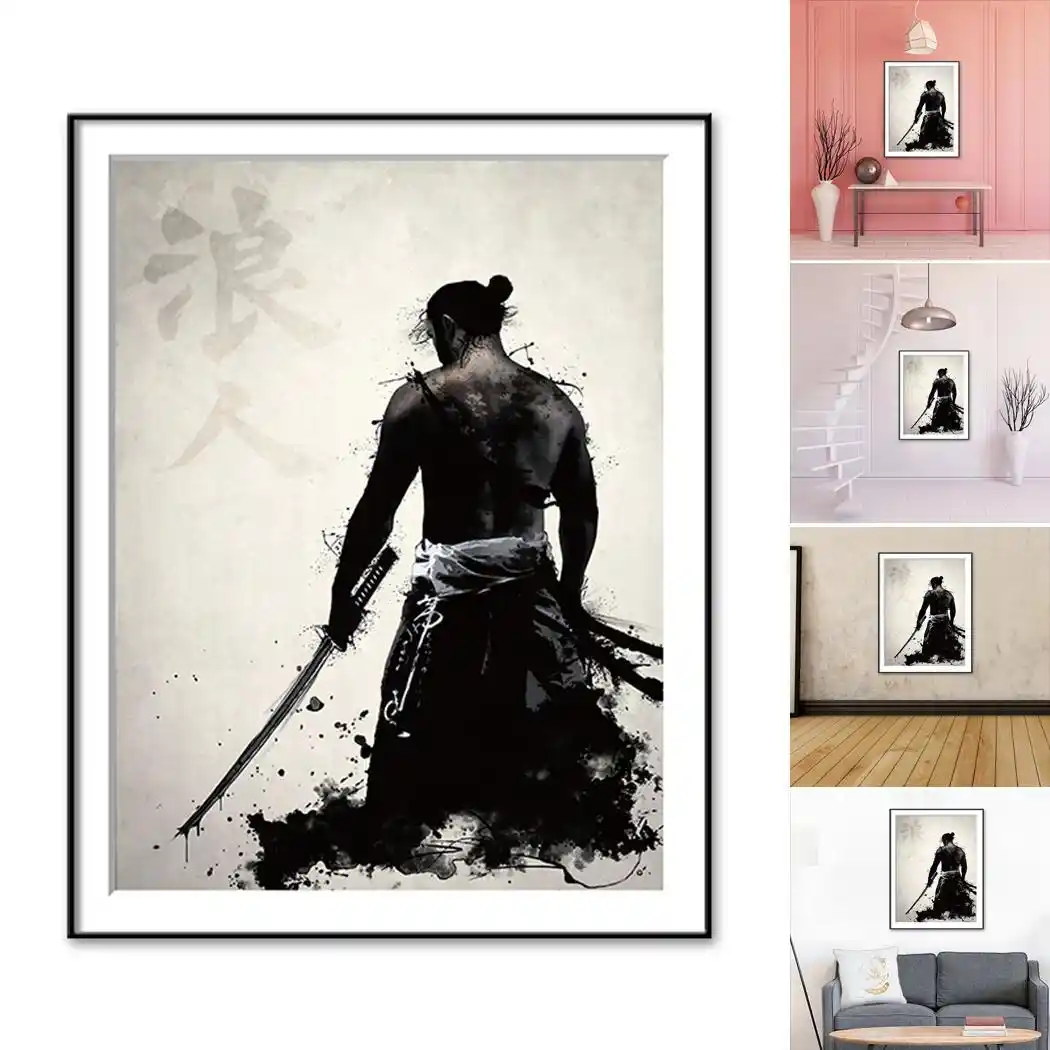 Computer Painting Wall Simple Samurai Art Japanese Decor Canvas