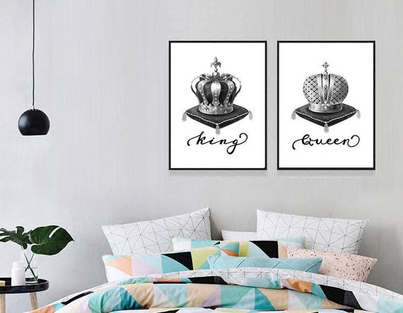 King And Queen Above Bed Wall Decor Set Of 2 Prints Royal Etsy