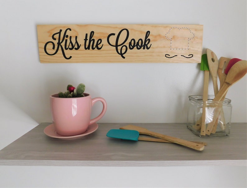 Kitchen Chef Sign Kiss The Cook Wood Sign Rustic Kitchen Etsy