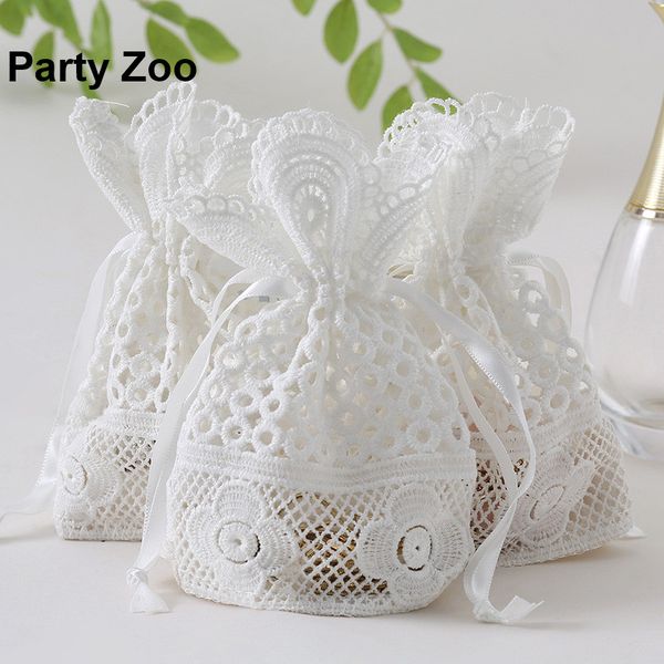 60 X 4 5 5 White Hole Lace Silk Drawstring Bags Milk Silk Lace
