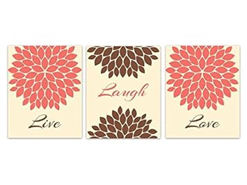 Amazon Com Live Laugh Love Wall Decor Coral And Brown Flower