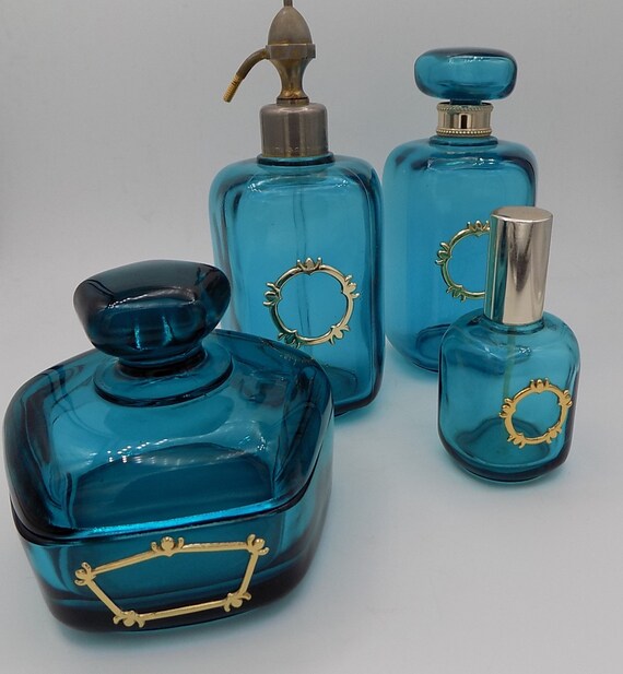 Set Of Bathroom Trim Toilet Signed Marcel Franck Blue Glass Etsy