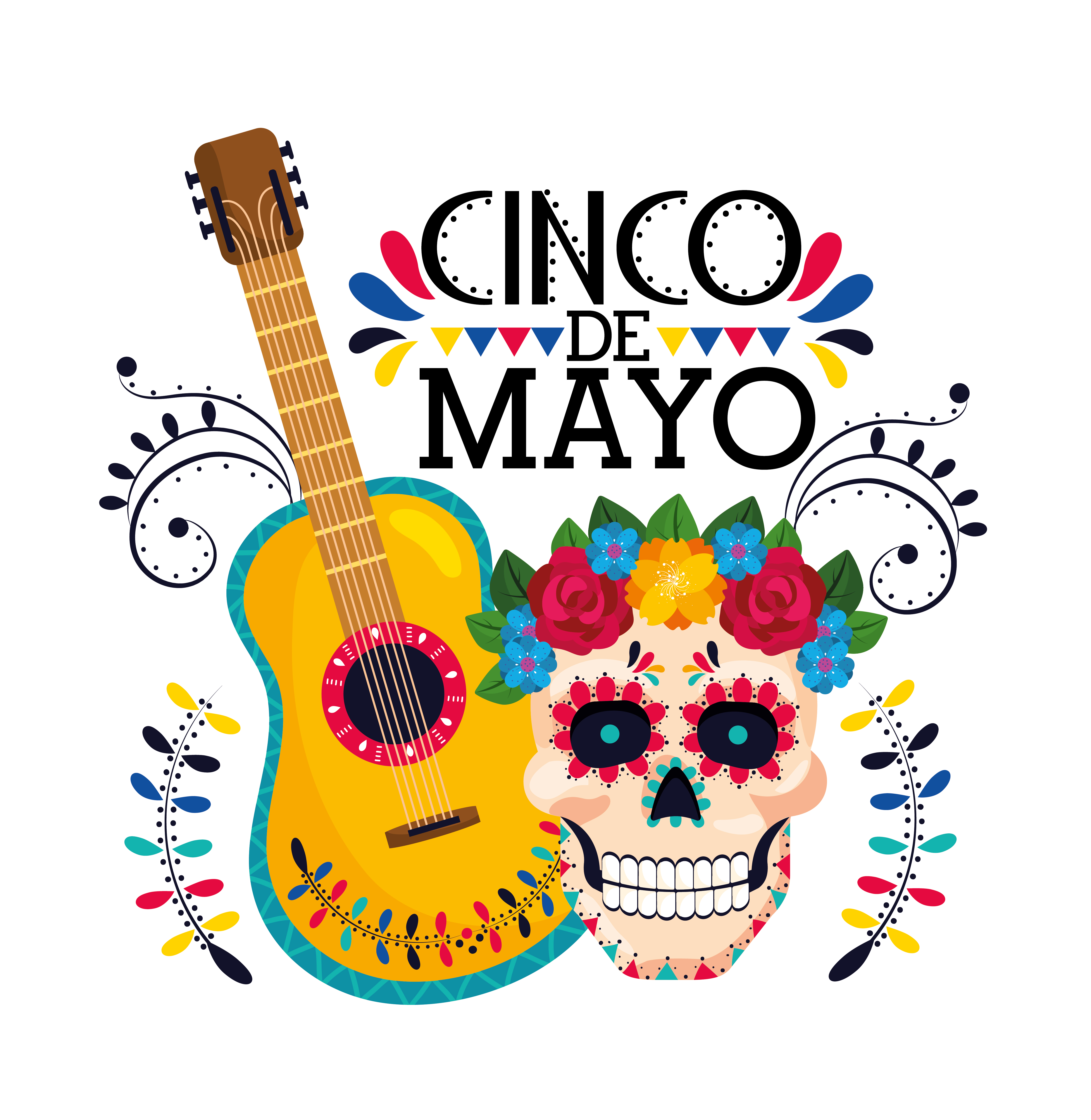 Skull With Flowers Decoration And Mexican Guitar Download Free