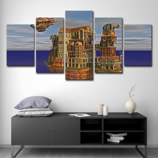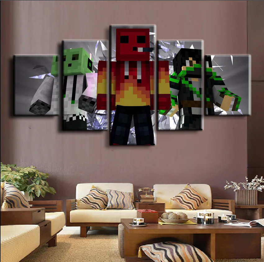 5 Panel Canvas Painting Home Living Room Minecraft Hd Printed Game