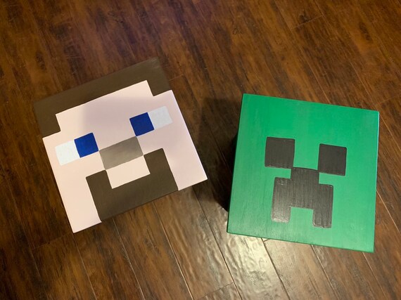 Hand Painted Minecraft Inspired Canvas Wall Decor Etsy