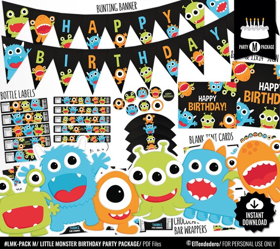 Little Monster Birthday Decorations Package Printable Kids Etsy