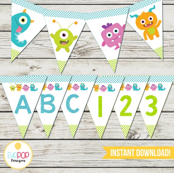 Little Monster Birthday Banner Alphabet Numbers First Etsy