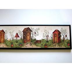 Martha Hanson Outhouse Print Full Moon Wood Frame Bathroom Decor