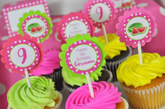 Watermelon Cupcake Toppers Watermelon Birthday Party