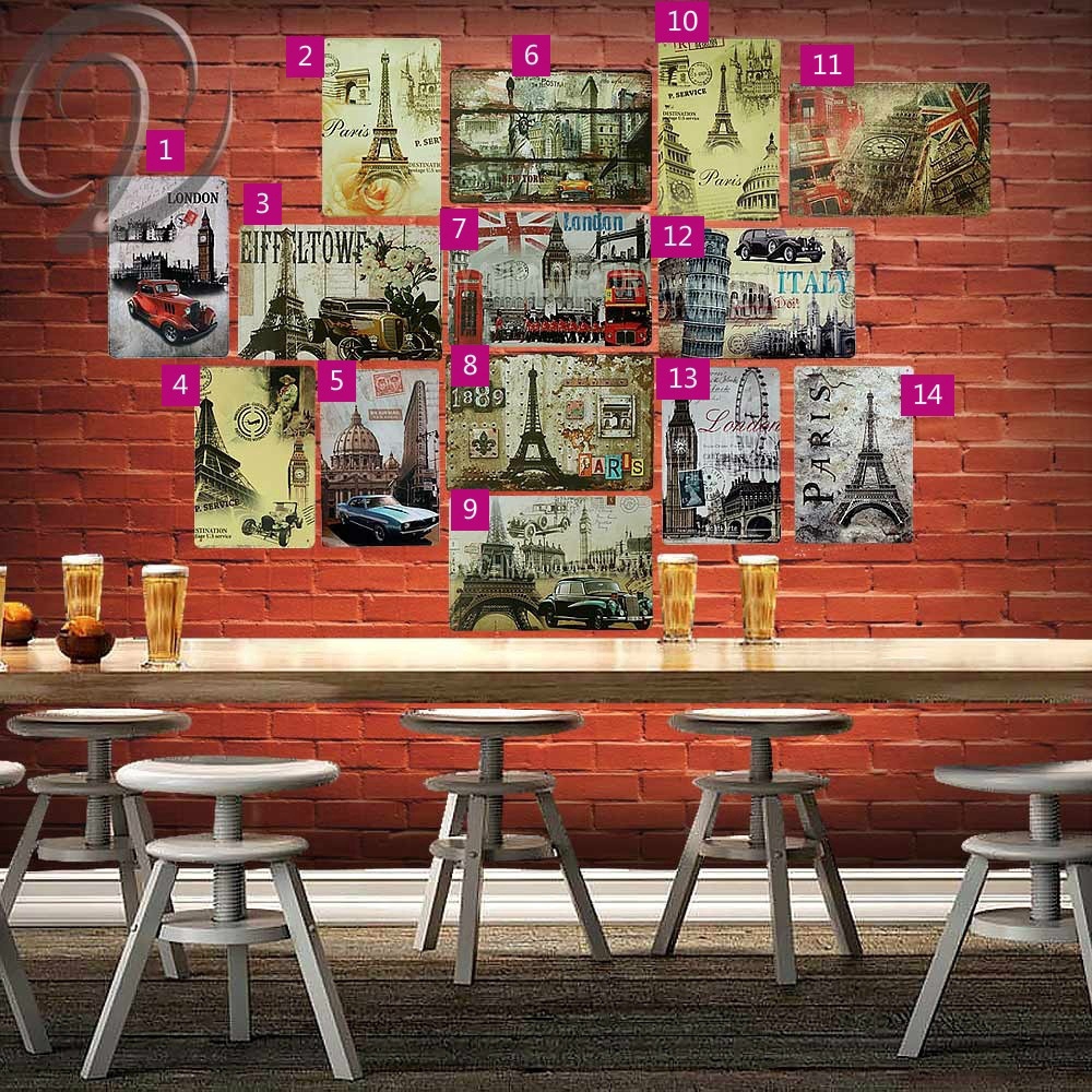 Paris Eiffel Tower Metal Tin Signs Poster Wall Home Bar Pub Decor