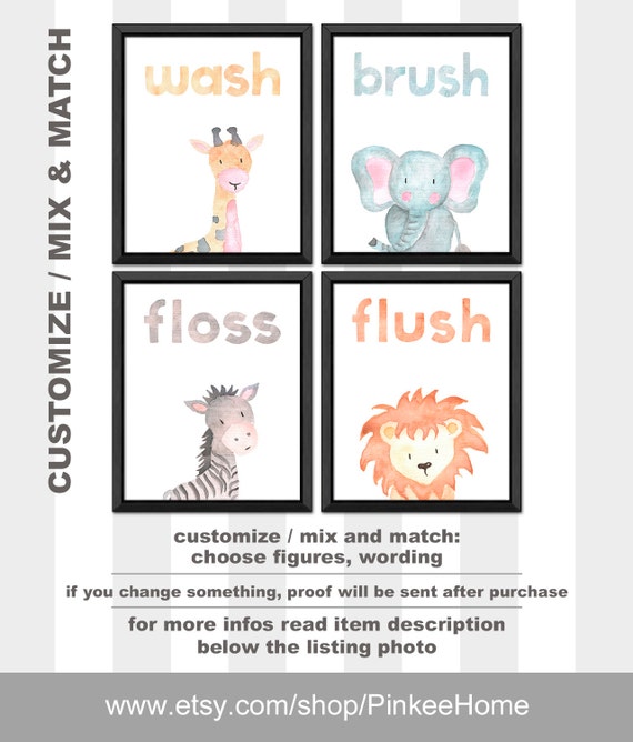 Safari Kids Bathroom Decor Watercolor Safari Kids Bath Decor Etsy