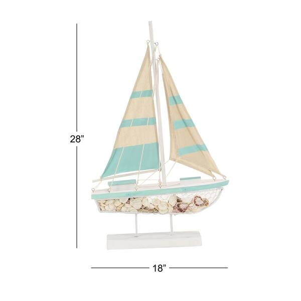 Shop Coastal Green And White Wooden Sailboat Decor Free Shipping