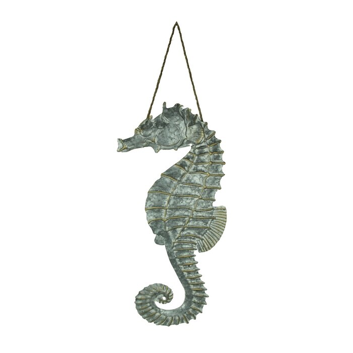 Lacey Look Distressed Design Coastal Teal Seahorse Metal 18 Inches