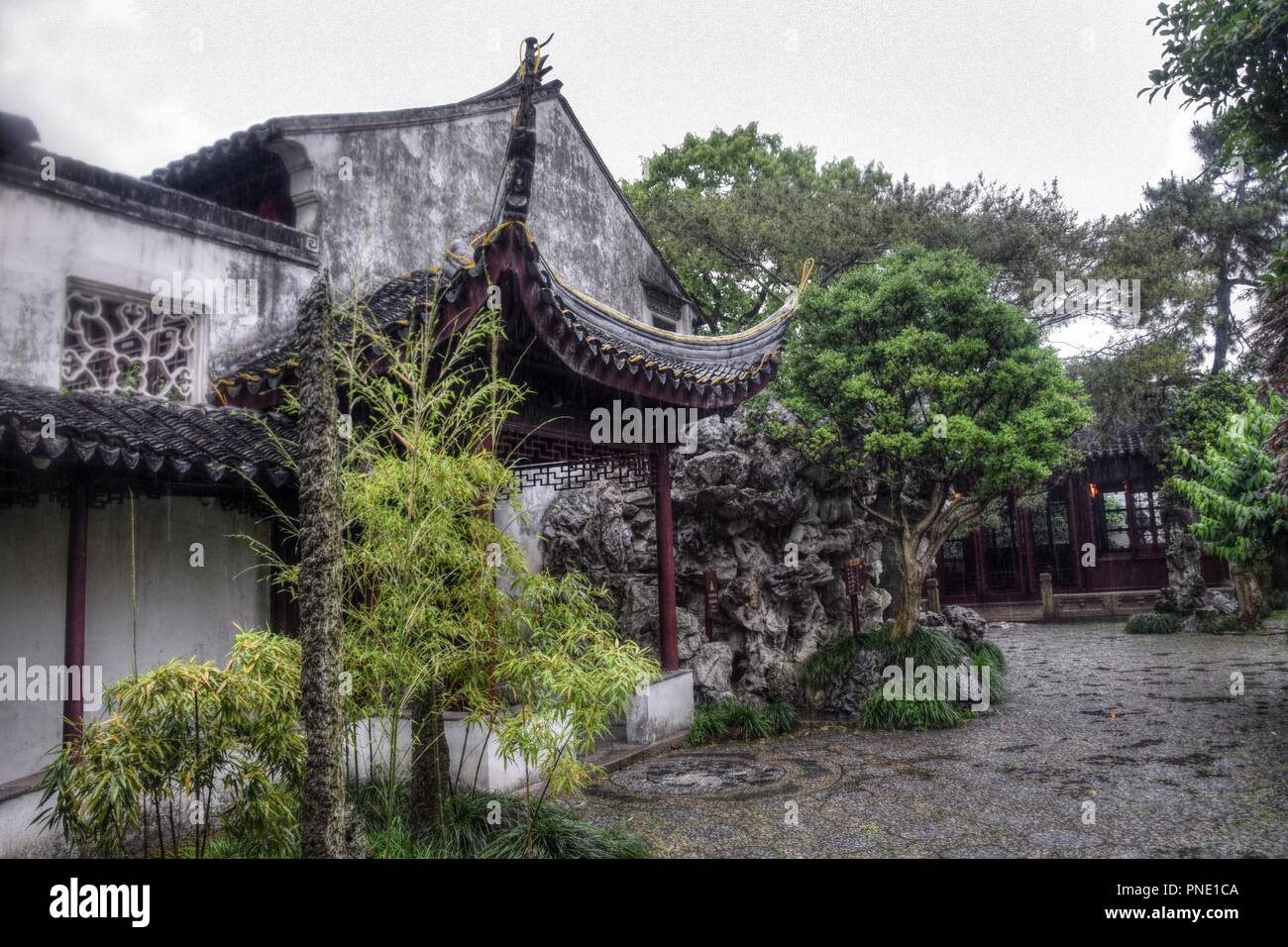 Decorative Roofs Gazebo Small Pond With Rocks Around Trees And